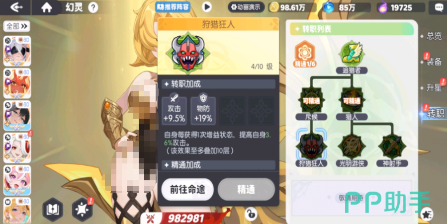 第三种方案为狩猎狂人,归属斥候系分支。其核心机制为“增益叠层转化”,每获得1个增益状态(如暴击率提升、攻速加成、暴击伤害提升等),即叠加1层被动,最高可叠至10层,每层提供固定数值的物理攻击力加成。虽然初始面板成长低于前两者,但高度依赖团队辅助体系,在携带多重增益类队友(例如提供攻速buff、暴击率增幅、减抗debuff的角色)时表现尤为突出。攻击力短板可通过装备词条精准补足,整体战术容错率与阵容兼容性极佳。