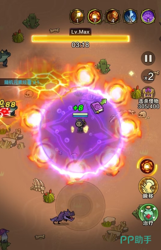 技能配置采用“4+1”模式:玩家可在全部技能中自主选择4个主动技能,搭配1个强制携带的基础技能“魔法弹”。除引导赠送的“末世之怒”外,初始即开放火球精灵、雷击术、噩梦领域三枚元素技能。其余技能需通过商店技能召唤、限定时装或宠物附带机制获取。当前版本下,末世之怒、火球精灵、雷击术、噩梦领域构成最优前期技能组,四者覆盖火、雷、暗三系输出,协同效果突出,可稳定通关2阶段全部关卡,且全部为游戏内免费获取内容。