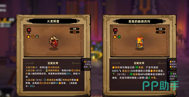 宝藏选择直接影响燃爆流的实际强度。所有配置均需围绕两个关键目标展开:提升燃爆伤害倍率、保障火龙之魂稳定叠层。必须确保至少拥有6层火龙之魂,这是燃爆效果触发的硬性条件。在传奇宝藏中,“混沌之钥”可解锁5个可选词条,其中“火龙焰手”与“危险的助燃剂”为必选项:“火龙焰手”提供两层火焰光环,持续强化火属性环境;“危险的助燃剂”则是燃爆机制的核心触发器,可在生成毒物后瞬时引爆,打出高额范围火焰伤害。其余三项可灵活选用“诡异的眼镜”“时光沙漏”“吞噬之刃”以补足生存、节奏或持续输出能力。