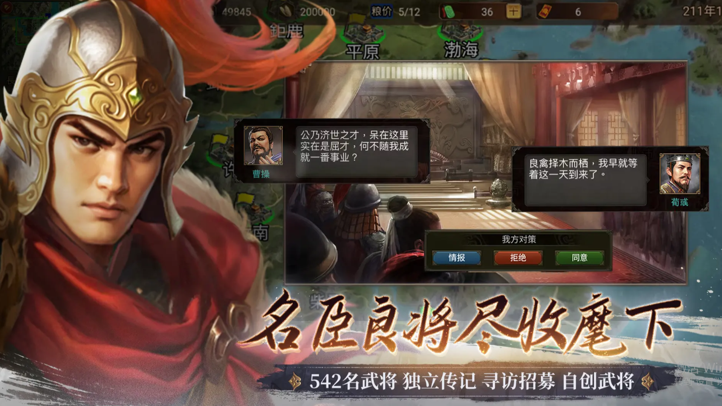 融合城建经营与战棋策略玩法,玩家需依据地形条件规划城池布局,升级防御工事、资源建筑与兵营设施。将领培养系统支持多维成长路径,曹操等名将拥有差异化统帅效果与专属战术指令。战斗采用动态回合制,可实时调整阵型、释放连携技,并根据敌方配置灵活切换主将与副将组合。