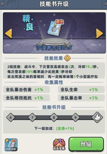 在挑战水元素的时候,技能书的搭配会直接影响战斗的顺利程度。水元素本身比较怕沙漠类的技能效果,所以队伍里最好有一个人能带上对应的技能书,沙漠考古学在战斗中可以比较快速的生成血包,让队伍在长时间消耗中保持状态。另外,因为水元素的血量不低,如果不想带太多偏治疗的角色,就需要靠急救专精补充血量,让队伍在关键的时刻能稳住血线。