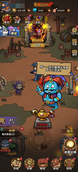 剑与黎明的玩法丰富,它不仅只有经典的闯关和地下城搜索这两种玩法,游戏还加入了生存挑战,玩家在规定时间内得顶住一些数量的怪物疯狂进攻才能坚持到最后,另外吃豆限时版的玩法也很有意思,玩家需要一边躲避敌人的追捕,一边在地图上收集资。还有隐藏的任务的玩法,得完成特定的条件才能获取通关钥匙。这五大关卡可以轮番体验,每一关都能让玩家享受到割草的乐趣,完全不会觉得枯燥。