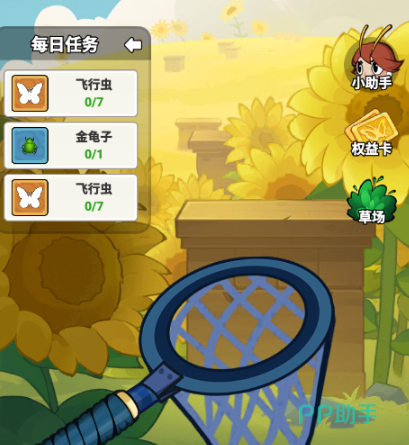 如果觉得战斗有一些累了,也可以开启养生时刻拿起捕虫网,然后进入到田园草场里面去捕捉虫子。游戏里面的虫子按照体积还有种类就会划分稀有度,越是稀有的虫子越是可以带来战斗力加持。每天还要积攒足够的诱饵,可以到草场去碰一下运气,说不定还能够捉到传说级别的稀有虫子。这里会有很多的目标,例如有飞行虫,有金龟子,每天在完成补充任务之后,就可以解锁额外的奖励。除此之外,每日的任务也别忽略,小助手就会提醒大家当天的目标。