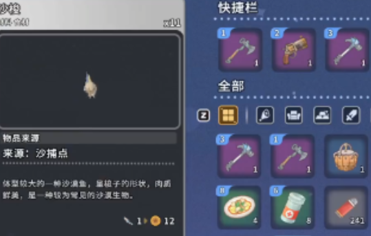 在《沙石镇时光》中,有很多独特的小物件,比如蚯蚓,又或者发光蝎子这一类。它们用途不同,有些能给我们的效果也不尽相同。其中,“蝎子”在游戏中并不属于我们常见的食材或者一般的合成材料,而是作为一种高级的鱼饵,且不可替换,不可替代。它的用途主要是进行“沙地钓鱼”,也是我们主线任务中必不可少的一环,虽然也能通过诸如”沙面虫“,”沙米“等鱼饵钓取,但不过概率实在低的可怜,而且会有”沙地惩罚“的效果,一般不推荐使用。