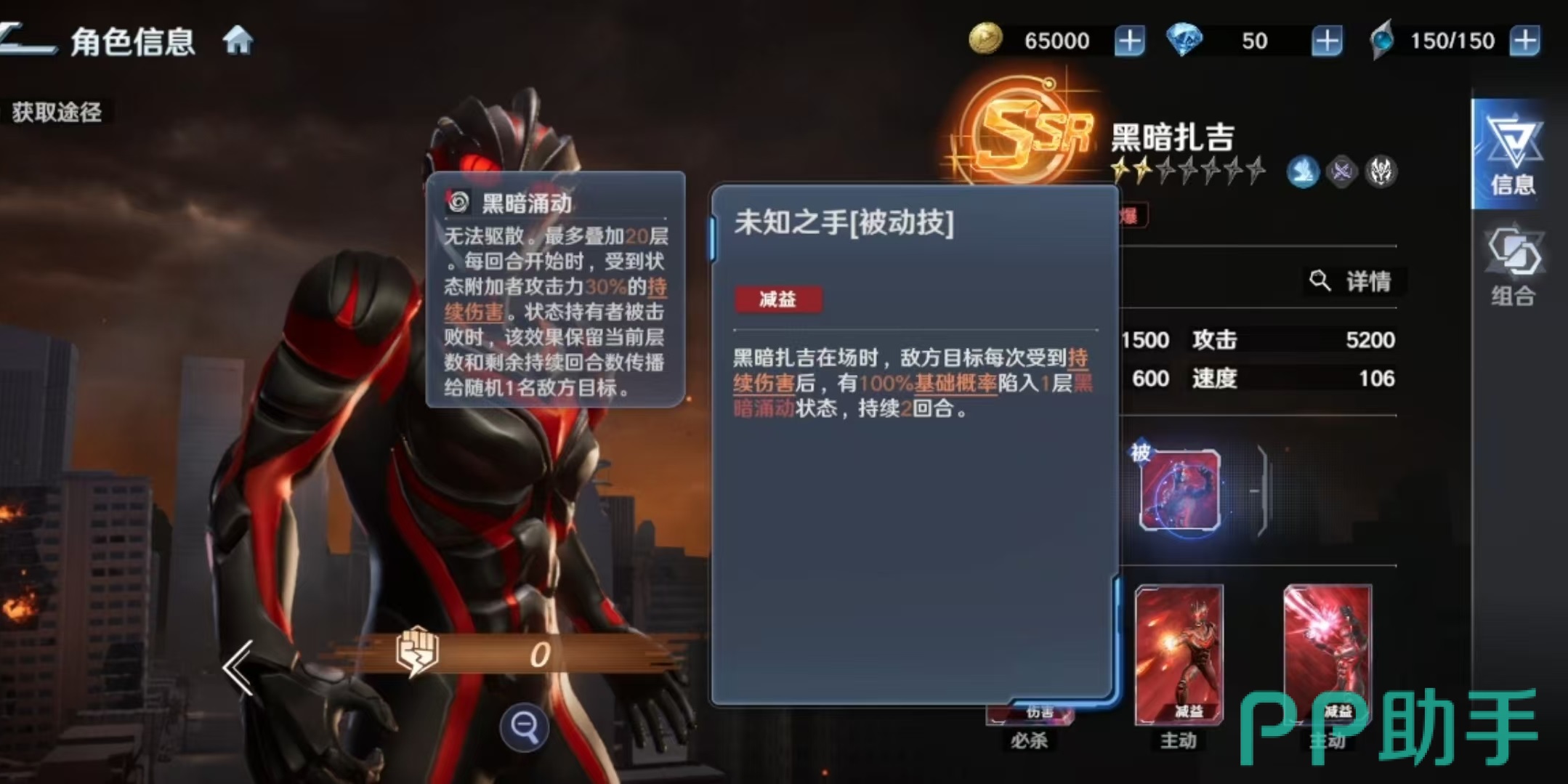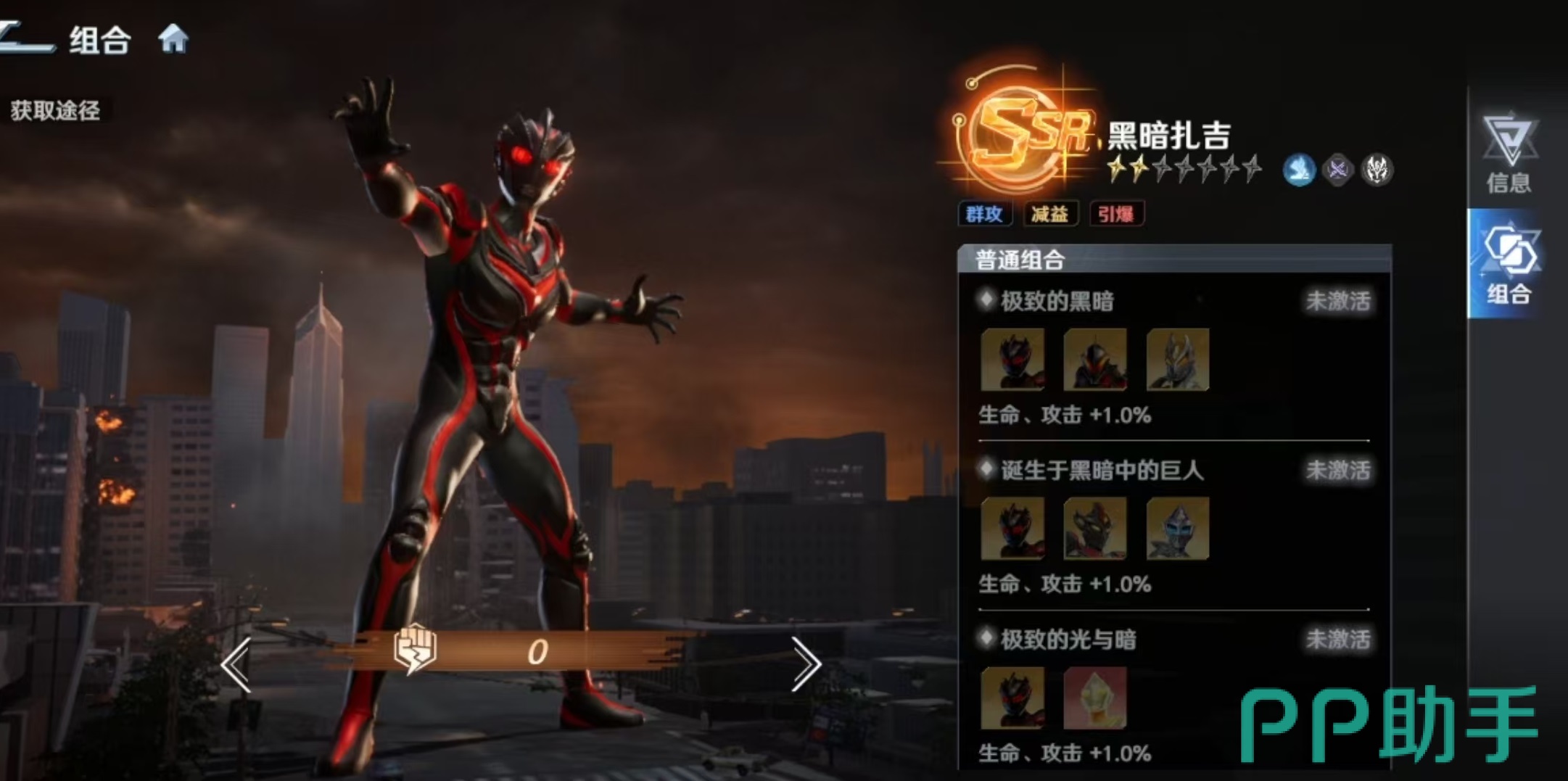 基于上述机制,黑暗扎吉的最优阵容定位明确指向“持续伤害协同流”。推荐搭配角色包括:强力型迪迦奥特曼(提供“燃烧”状态补充DoT)、达拉姆(同样具备稳定燃烧伤害)、卡蜜拉(强化团队生存与状态维持能力)、芝盾(显著提升全队持续伤害覆盖率)。以上角色均能有效激活“未知之手”的触发阈值,并放大“黑暗涌动”的连锁收益。