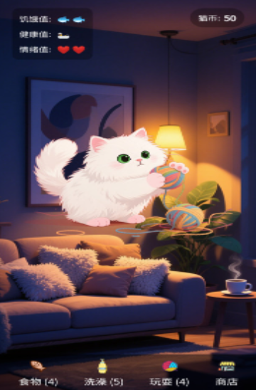这款游戏给你设计了一只如棉花糖般软萌的小猫咪Tom,你可以给它喂食、洗澡等,让它健康成长。游戏会以数值的方式来表达小猫此时此刻的健康情况,你才能直观了解猫咪,并及时做以弥补。游戏里,猫咪的呼噜声与现实里的相差无几,才让你犹如拥有一只真宠物般喜悦。