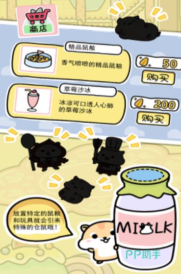 游戏给你塑造许多软糯可爱的小仓鼠,你可以养它们,给它们投喂好吃的点心,让它们茁壮成长。游戏里,每只仓鼠都有不同的性格,各自会说出一些大相径庭的话语,定让你看个啧啧称奇。游戏有相机,你可以记录下仓鼠们滑稽可爱的形象,保存到相册,随时都能拿出来一观,心灵被温暖充斥。