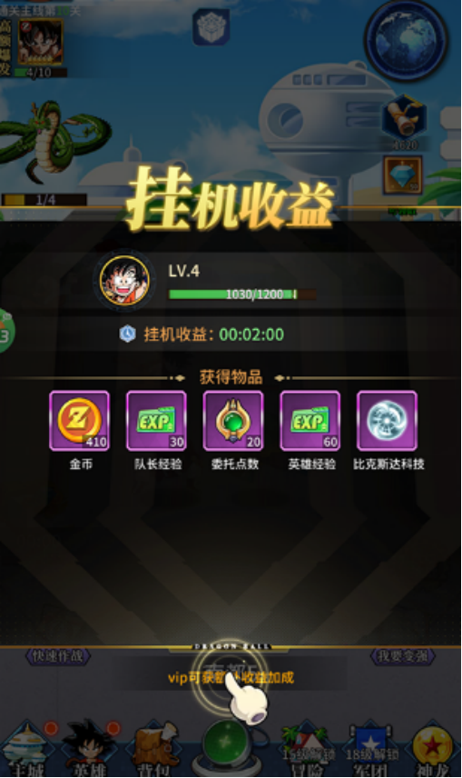耀世格斗这是以龙珠ip为题材的放置挂机手游,其中汇聚了龙珠超等多种英雄角色,所有玩家都可成为龙珠世界当中游历的队长,利用卡牌召唤的方式获得更多龙珠人物与他们并肩作战。耀世格斗在哪里挂机?由于游戏加入了挂机模式,因此很多玩家都很想知道具体的挂机方式。作为游戏比较常见的核心玩法之一,通过挂机即可自动获取相应的经验和资源奖励,并不需要持续操作又或者是过多的点击屏幕,即可享受挂机所带来的无限欢乐,下方小编为大家详细介绍具体攻略。