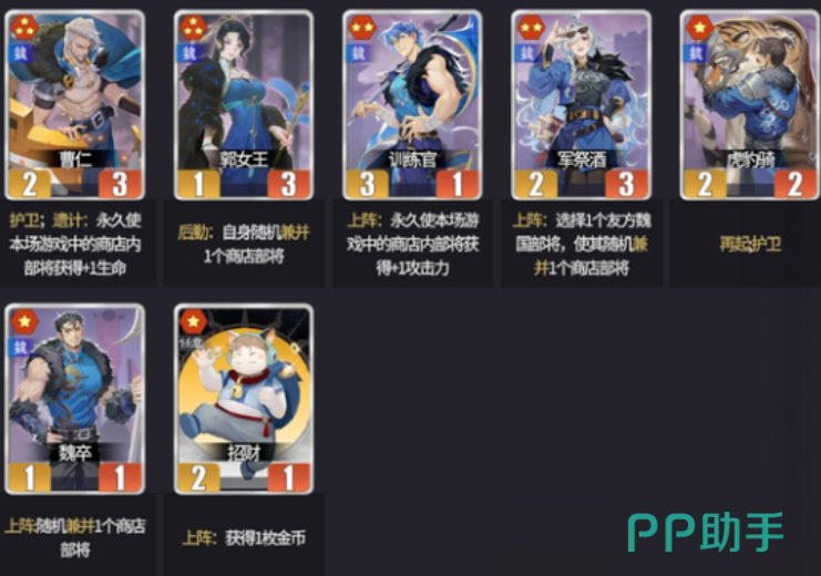 资源规划需前置布局。由于兼并机制高度依赖魏国卡池密度,建议每回合有意识囤积魏国阵营卡牌。白虎与甄姬是当前版本最稳定的魏国核心卡获取来源,具备高命中率与可持续性。青龙与军祭酒组合可形成良性循环,持续扩大兼并频次与收益。典韦与夏侯淳亦属优质培养目标,前期预留九尾与玄武资源尤为关键——但需注意场上魏国部将数量阈值,避免九尾效果误触中立卡牌,导致资源投放偏离预期。