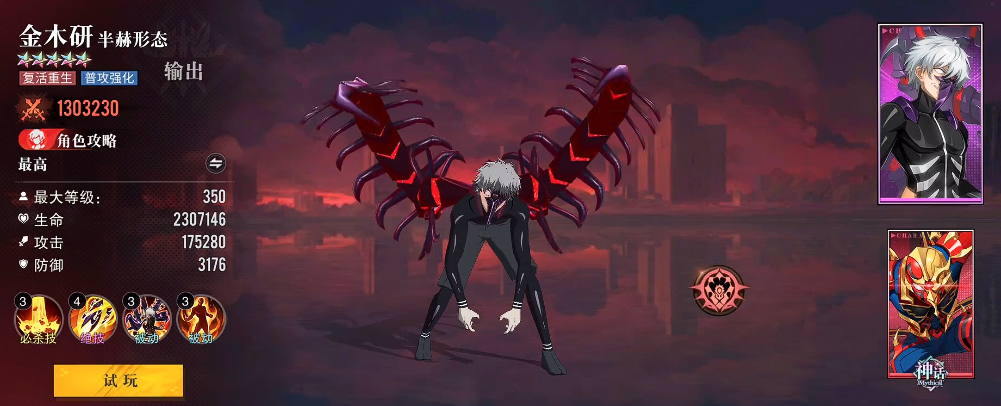 这里首先为大家推荐的几个角色当中第一个可以培养的就是金木研,金木研他作为很多团队里面会用到的核心角色,在这里第一个为大家介绍,也是因为他有一定的爆发伤害,输出效果,那么在前期容易获取的同时,他在战场机动性上面有灵活的动作能力,在后期通过形态变化的时候,技能效果也可以对大多数的敌人造成穿透类型伤害,同时在对敌人造成此类伤害时,他可以给自身带来一定生命恢复,所以当前作为全能核心角色培养起来的话,可用性非常高,那么也不存在他后期躺冷板凳的可能性了。