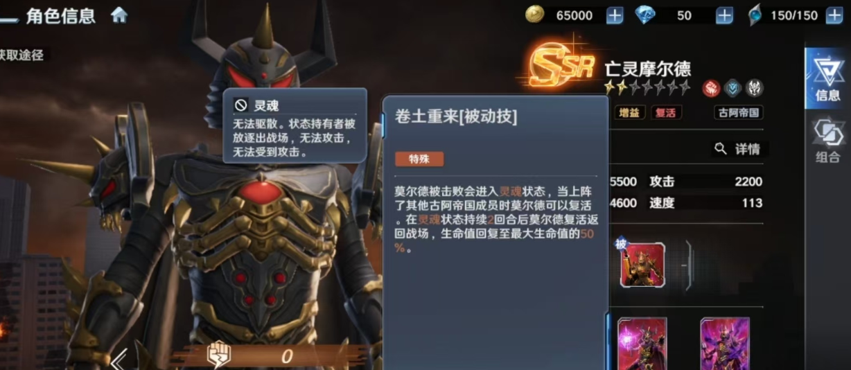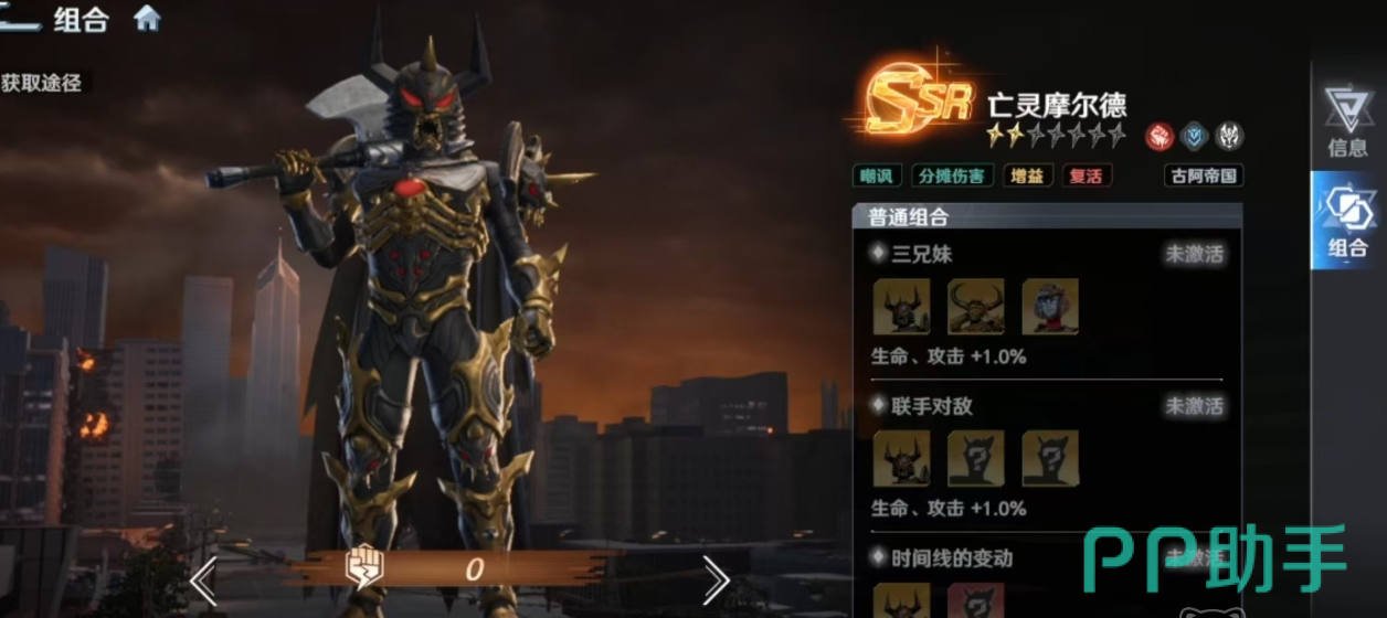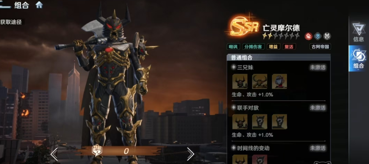 亡灵摩尔德的战力飞跃很大程度上依靠对古阿帝国阵营完整性的建立。建议玩家先集齐三兄妹组合,再搭配黑暗扎吉等高战力的队友来达到属性最大化的目的,在触发卷土重来被动效果的时候,能获得更多的增益。将角色个人成长和体系化建设深度融合的现状,使游戏的战术养成上限被大大提高,每一次对防御芯片和生命权重的配置,都显得非常具有性价比。