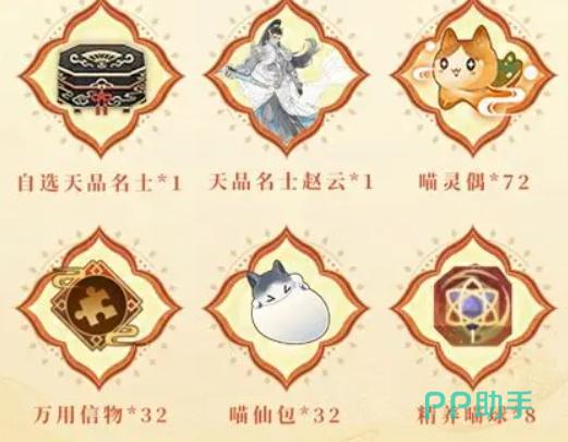 本阶段活动以“高覆盖率、低参与门槛、强实用性”为设计原则,涵盖大量基础养成材料与稀缺外观资源。玩家可通过日常行为轻松获取喵灵偶、万用信物、喵仙包、精养喵球、八宝肉等关键道具;同步开放限定聊天气泡、头像框、绝版家具、限定称号等个性化内容;更设有天品名士自选礼盒、天品名士赵云获取途径及戏曲喵专属皮肤,整体资源投放密度为近期版本之最。