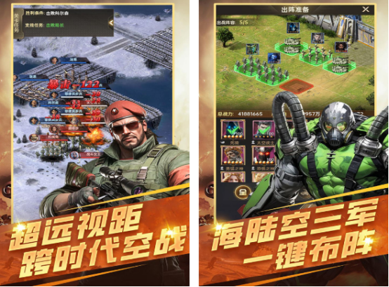 在经典的即时战略卡牌游戏当中,你将进入二战的平行世界,既可以利用深度卡牌养成的方式,培养属于你的二战名将以及王牌指挥军团,更是以真实的二战所拥有的历史名将角色为主。成为了里面的指挥官以后,必须要使用运筹帷幄等方面的实力,才能在与其他玩家展开领土争夺的过程当中,维护世界秩序,成为历史的缔造者。