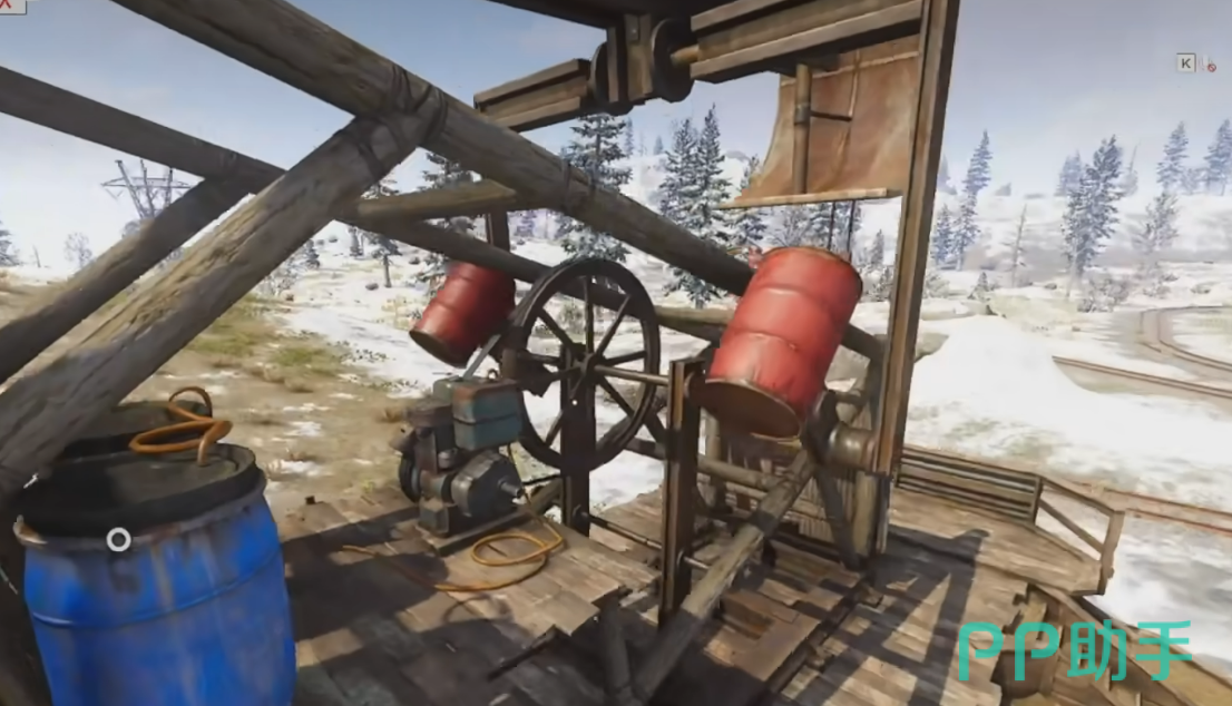 操作流程清晰明确:首先建议在发电站周边建立据点,便于高频往返。抵达后,定位燃油提取机(位于站点旁),随后向左行进至邻近小屋——该建筑下方固定刷新两桶柴油;接着沿铁路线直线前行,抵达轨道中段位置,地面将额外生成两桶柴油。总计可稳定采集四桶柴油。