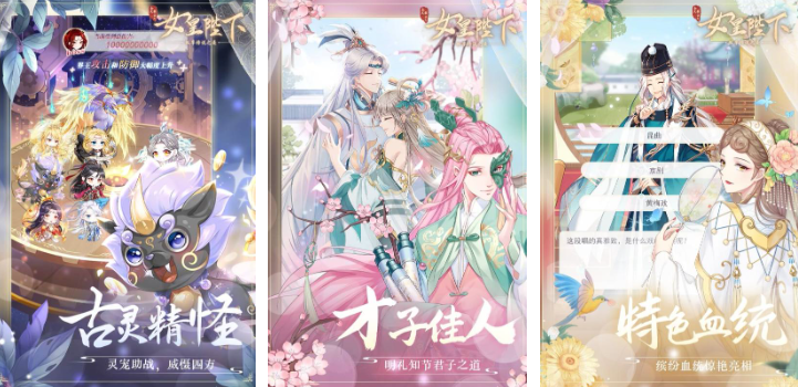 这是一款融合穿越设定与宫廷权谋元素的女性向养成游戏。玩家将扮演意外登基的年轻女皇,在恢弘古风场景中推进剧情发展。游戏内置丰富支线与好感度系统,可自由培养多位才貌双绝的角色,通过诗会、朝议、巡游等多样化事件提升羁绊。美术风格考究,UI界面采用传统纹样与柔光渲染,整体呈现高完成度的东方幻想质感。