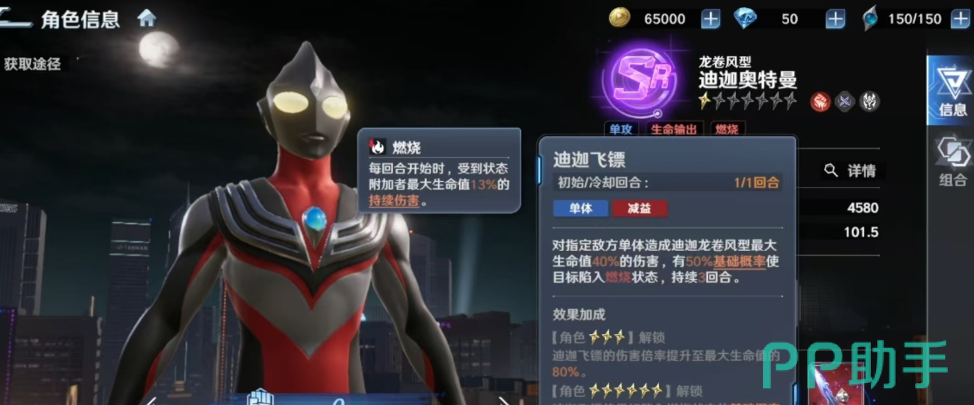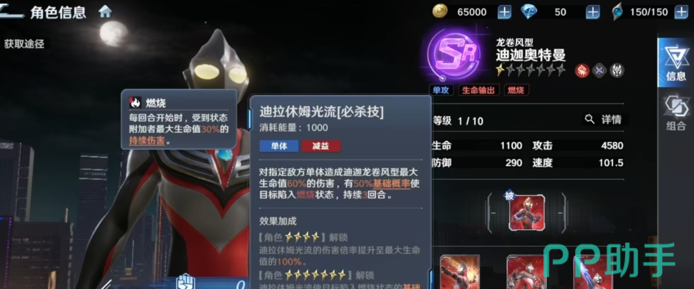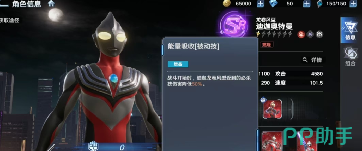 在《奥特曼:光之战士》游戏中,迪迦奥特曼龙卷风型作为自然系进化的SR级角色,凭借其独特的气流操控机制与高生存适配性,成为新手期至中期阵容构建的关键支点。该形态并非依赖瞬时爆发,而是通过“能量吸收”“最大生命值百分比伤害”及“燃烧持续损血”三大核心机制,形成攻防一体的战术闭环,广泛应用于清场压制、持久消耗与高难BOSS战等多类场景。
