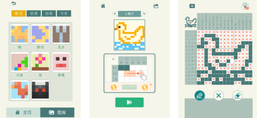本作是一款支持离线运行的像素填色解谜游戏,核心机制严格遵循经典数图规则:每行每列数字代表该方向上连续同色方块的长度与顺序。界面采用马赛克风格网格布局,提示清晰直观,无需联网即可沉浸式推理。关卡设计由浅入深,兼顾新手引导与高阶挑战,是入门数图玩法的理想选择。