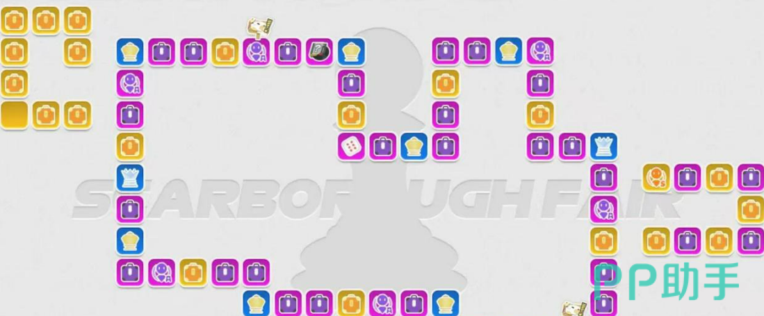 在斯卡布罗集市中,玩家消耗指定资源进行骰子投掷,棋子依点数沿预设轨道移动。棋盘由多种功能格组成:抵达角色格可直接获取对应角色;停驻宝箱格则触发随机奖励,包含角色或武器。该机制弱化了“结果即时反馈”的被动性,强化了过程中的不确定性与探索节奏——每一次掷骰都可能导向不同收益路径,既存在直抵目标角色的高效路径,也需应对迂回推进的策略调整。