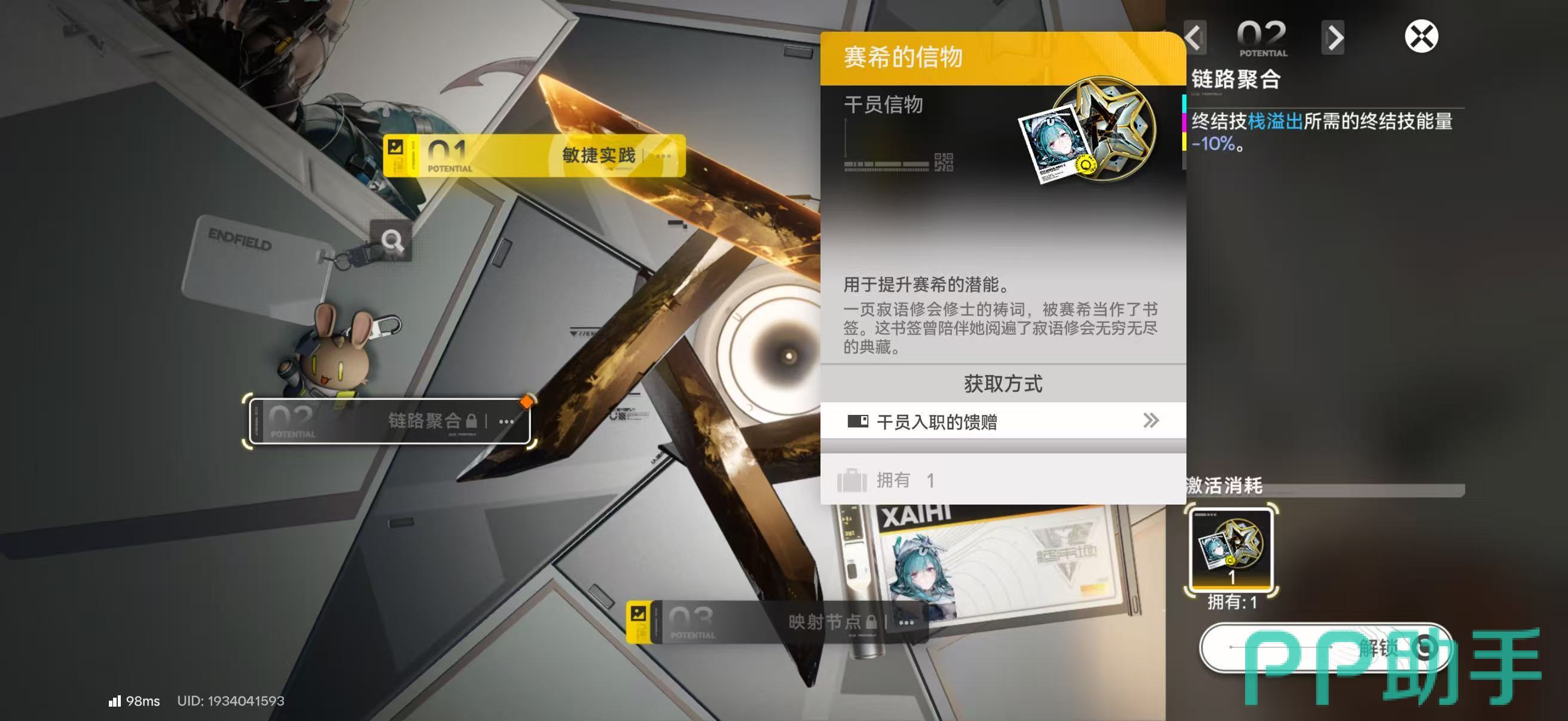 完成信物收集后,进入干员界面→点击【潜能】标签页,即可按信物持有量逐级解锁。每级潜能需消耗固定数量信物,且部分高级潜能节点需满足干员当前等级或突破状态方可激活。建议玩家在规划养成路线时,优先集中资源培养主力干员,避免信物分散导致关键潜能空缺。
