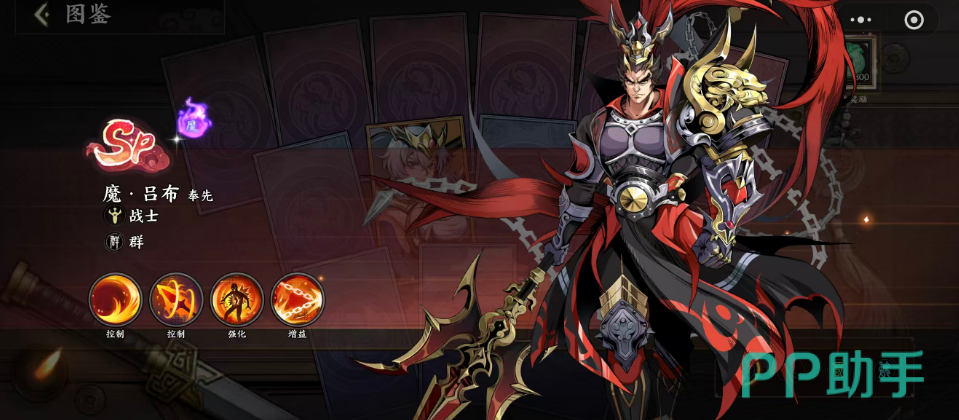 首推SP级武将为魔吕布。其一技能具备范围压制与爆发双重特性:落地时对地面区域发动强力震击,击飞范围内所有敌人;随后挥斩造成600%攻击力的高额伤害,且对生命值低于15%的目标触发斩杀效果。每次成功斩杀可恢复自身20%最大生命值,并赋予2秒无敌状态。二技能为突进穿刺,造成190%攻击力伤害,同时强制清除目标全部护盾效果——在面对高护盾配置的敌方阵容时,该机制显著提升实际破防效率与持续输出能力。