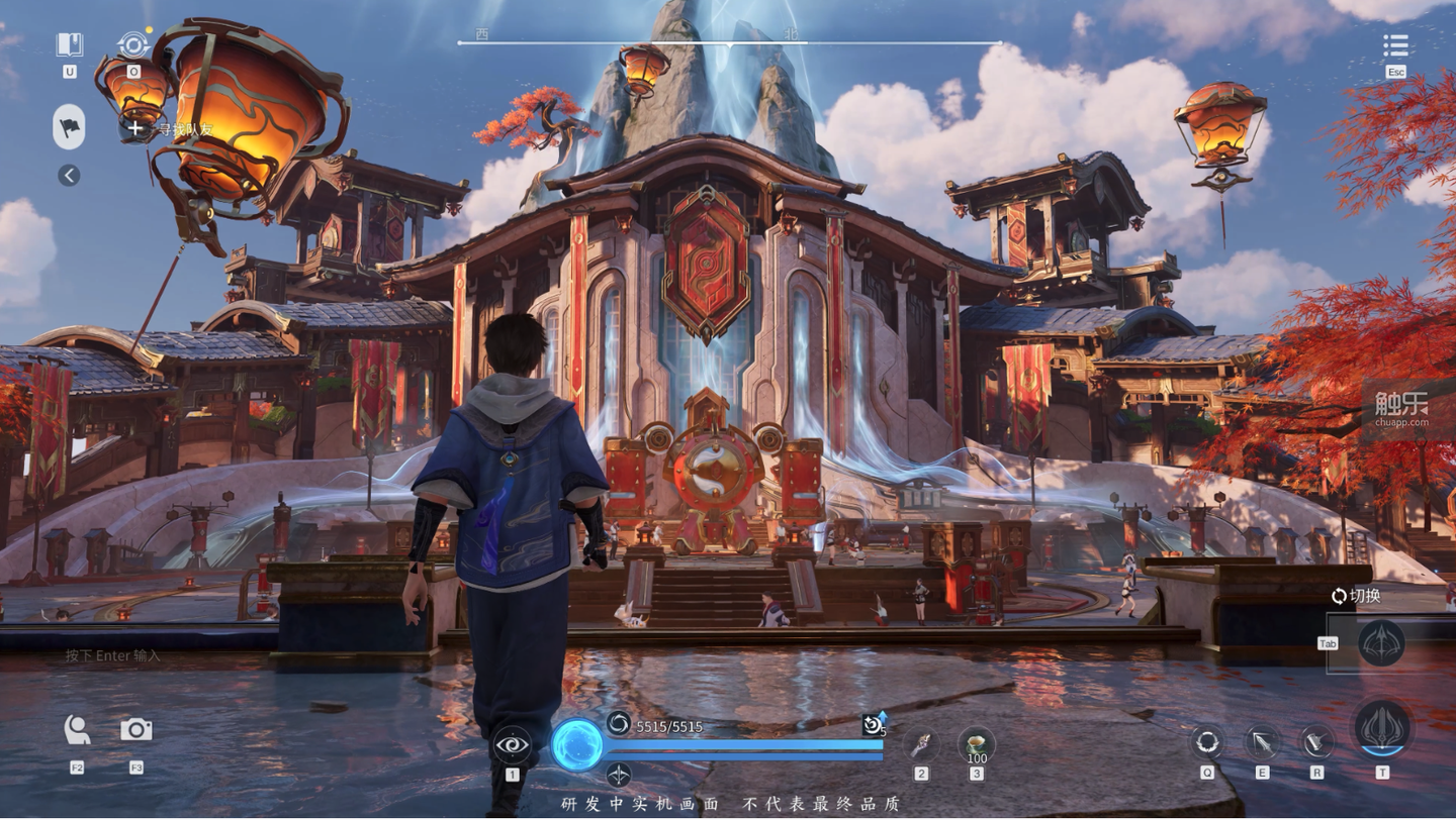 游戏地图规模庞大,“稷下”区域仅为初期开放内容,实际体量尚不足全图十分之一。该区域本身已具备广阔空间,融合多类型建筑群落、自然地貌及立体纵深结构,并分布有动态怪物与随机事件,辅以二段跳等机动操作设计,显著提升探索自由度与交互沉浸感。
