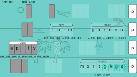 基于打砖块经典玩法重构英语训练逻辑,整合托福考试大纲及国内主流英语等级测试词表,涵盖超万条核心词汇。游戏界面清晰呈现目标单词结构,玩家需在砖块下落过程中迅速判断并输入正确拼写,触发击碎反馈的同时完成语音复读与词义联想,达成“手眼耳脑”协同参与的语言内化过程。