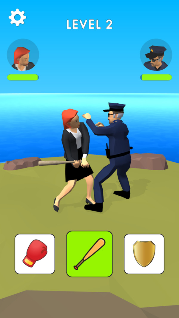 创新融合格斗操作与战术预判机制,武器系统包含盾牌、拳套、棒球棍三类基础装备,战斗舞台设定于低饱和度海滩场景。玩家需实时分析对手行为模式,在进攻/防御意图间做出毫秒级判断。角色设计延续风格化表达,宇航员、小丑警察等单位兼具视觉识别度与动作特性差异化。