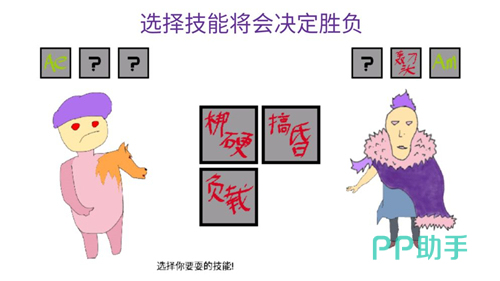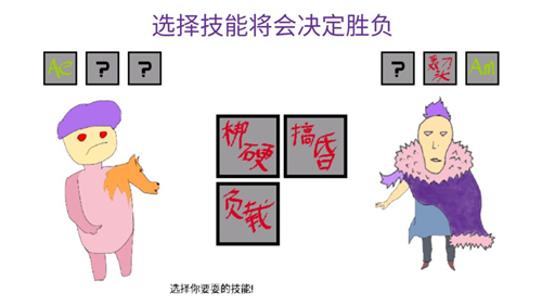 本作以极简文字图标系统构建技能体系,强调战前策略编组与实时操作节奏。玩家需在对战开始前完成技能预设,并通过高频触控响应角色攻防频率差异。角色设定融合荒诞美学与功能辨识度,如阿尔法狗、灵魂收割者等形象兼具视觉记忆点与机制独特性。