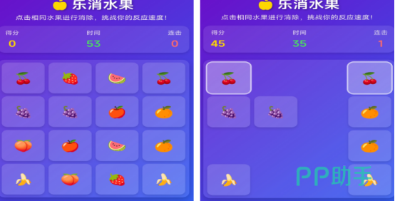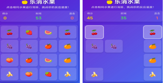 经典三消机制的极简优化版本,界面采用高饱和度水果图鉴设计,视觉辨识度强。核心玩法为点击两个相同水果触发连锁消除,连消次数越多,得分加成越显著。每局限时60秒,考验玩家短时反应与预判能力。游戏不含能量系统,不限制每日局数,所有水果皮肤、特效与音效均免费解锁,适配各年龄段操作习惯。