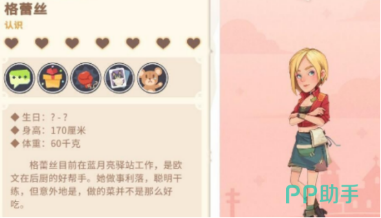 《沙石镇时光》是一款以沙盒建造为核心玩法的模拟经营类游戏,玩家可在开放世界中自由采集资源、规划布局、建设小镇,并深入探索多样化的特色关卡。游戏中NPC个性鲜明,互动系统丰富,其中格蕾丝作为可攻略角色之一,拥有独特的好感机制与行为偏好,掌握其喜好对推进剧情与提升关系至关重要。