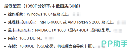 官方公布的最低运行标准为:支持1080p分辨率输出的显示设备。若显卡性能达到NVIDIA GeForce RTX 4060或同级及以上水平,可稳定启用路径追踪、Nanite几何体与Lumen全局光照等UE5核心特性,实现每帧画面的高保真渲染。其余组件参数详见下方配置图示,满足标定数值即可启动游戏。