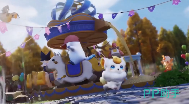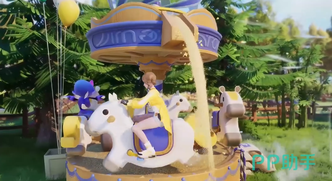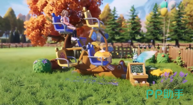 从PV画面可见,精灵可主动登上旋转木马,触发金色粒子特效——该效果对应实际产出:研磨完成的谷物资源。这一设定突破传统“工作即劳役”的叙事逻辑,将生产行为自然融入休闲场景,体现游戏构建的协作型家园生态。旋转木马本质为集成式磨坊,兼顾趣味性与功能性,是乌托邦式人宠共处理念的具象化表达。