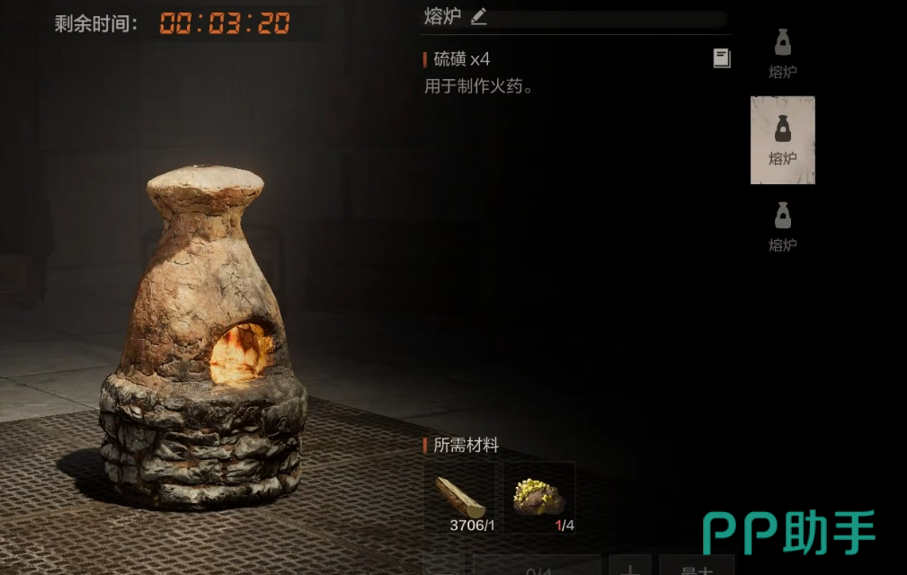 基础装备成型后,发育重心转向资源基建。熊类生物是油脂核心来源,而油脂为熔炉建造的必需材料;击杀后务必将其肉质投喂战马,以维持坐骑生命值与移速稳定性。返回据点后应立即搭建熔炉,并启动矿石采集——矿石是后期所有高级装备(包括弓箭强化组件、钉枪改装套件及手枪扩容弹匣)的合成基础,持续挖矿是不可跳过的成长路径。