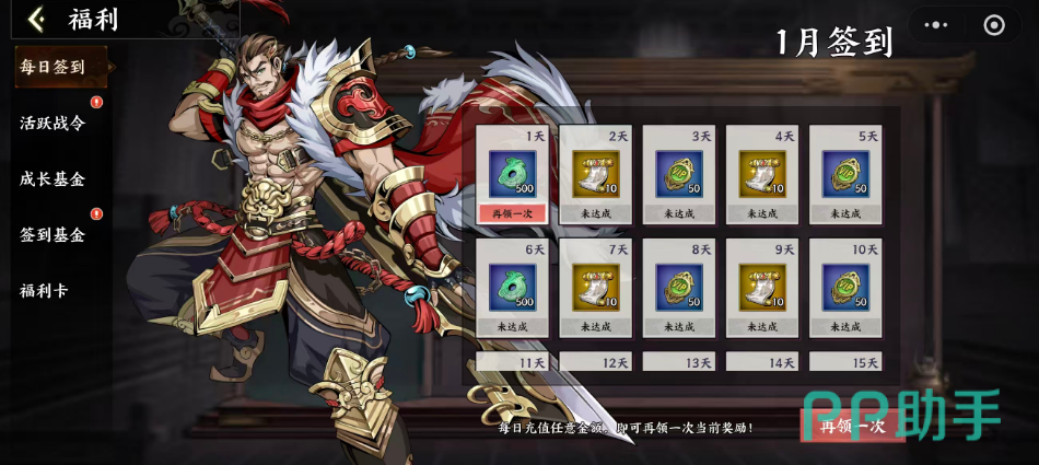 需明确的是,部分限时特惠礼包、限定天命武将等资源确需充值解锁,属于付费专属内容。但对非付费用户而言,游戏内仍设有大量可持续获取的免费福利入口。首推“在线奖励”——只要保持每日登录并在线时长达标,即可领取铜钱、经验丹、古玉等基础资源;其次为“每月签到”,连续签到满30天可获得包括稀有武将碎片、高级装备强化石在内的高价值道具。此外,“活跃战令”系统同样向所有玩家开放:完成日常任务、周常挑战即可积累战力点,随进度推进逐步解锁对应档位奖励,无需额外付费即可完整领取普通战令全部权益。