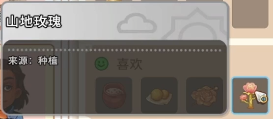 其次是薇蒂喜欢的东西,这里的东西基本上都和食物有关,前期小伙伴们烹饪等级可能没有那么高,做不出薇蒂喜欢的事物,这里小编就不做过多介绍了,只需要知道壮骨醒力汤和金钟护体丸是薇蒂喜欢的就可以了。这里小编推荐的是山地玫瑰,作为一种材料而言,山地玫瑰首先需要我们大量种植,来获取颜料等一系列的物品,而薇蒂“喜欢”的正是山地玫瑰,这也让我们在除了猫眼石之外,能送给薇蒂别的礼物,用以刷新薇蒂的喜好,非常方便。
