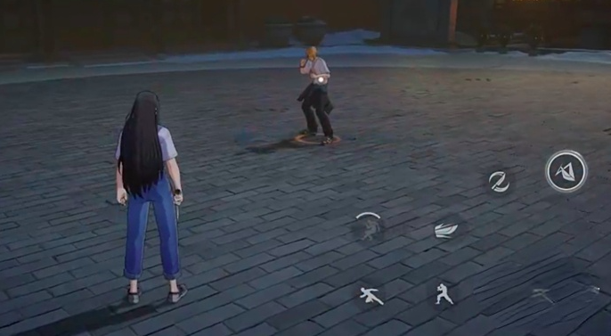 第三技能是“风火轮”,角色会用手中短刀快速斩击敌方两次,而这一招是的,出发可通过再次点击使用出连续进攻状态,如果能量槽已满,则可以同时触发腾空翻转和丢出剑刃的动作招式,之后也可衔接“飞龙在天”将敌人直接踩踏在地面。