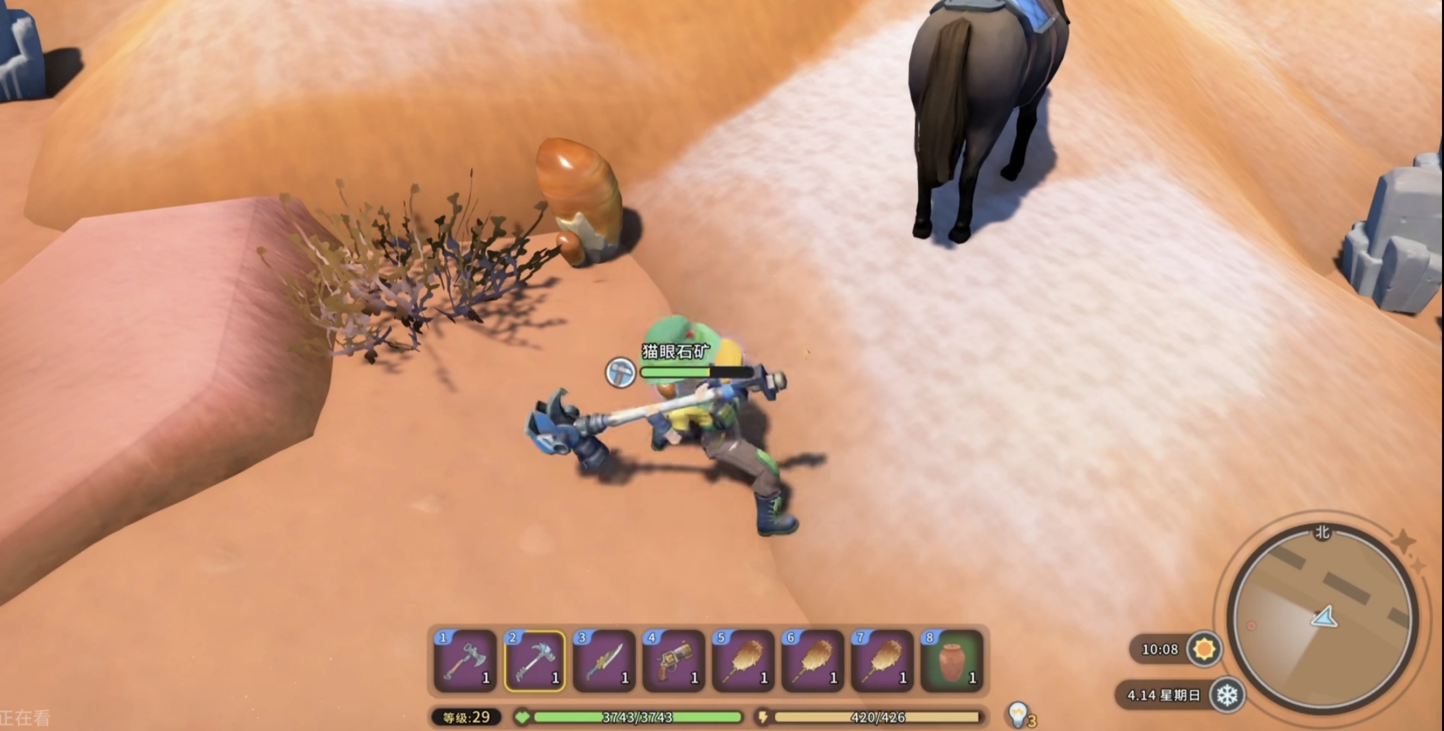 沙石镇时光猫眼石矿,当玩家在采集猫眼石矿又或者是打败怪物时,玩家一定要留心自身的体力和生命值,免得受到没有必要的损伤,总而言之,获得猫眼石矿的位一共有两种方法,玩家可根据自身的需要自由的选择,以便高效得到猫眼石矿。