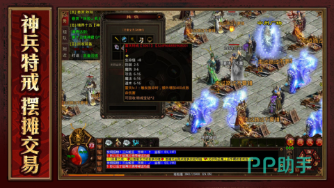 采用纯正2D即时战斗架构,操作响应迅速,打击反馈明确。重点强化大型团战体验——沙城争霸支持千人同屏对抗,跨服帮战引入赛季制积分排名与专属奖励池。内置自由交易系统,所有装备道具均可玩家间直接流通,怪物掉落率经官方调优,主流副本与野外精英怪均保持稳定高爆率。
