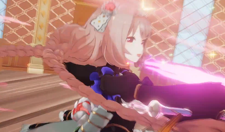第二个技能叫做让你变干净哦,利用这个技能,贝莱德会得到瞬移的效果,找到一个目标之后瞬移到对面身边跟他进行体力对比,只要是体力数值比她要低的敌人,此时针对这个敌人进行攻击的话,会带来一定的基础输出能力,然后找到目前队内体力比较低的队友,给他带来攻击力上面150%的回复,同时带来12秒的防护罩进行防御,在吸收了攻击100%的伤害之后,还可以使贝莱德自己在各种属性的抵抗效果上面增加20%,所以这个效果一般是在我方输出角色,如果被对面给集火攻击的时候可以快速的用起来的,就算不是输出角色,在有角色快减员的情况下,也可以用这个能力来力挽狂澜。
