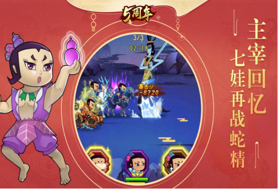 受到众多人的喜爱与追捧,也成为无数人的童年记忆,除了有几位可爱的葫芦娃角色之外,还有蝎子精以及蛇精,根据每位葫芦娃不同的特色技能默契配合,无缝衔接对妖怪进行战斗,游戏支持好友互动以及团队协作,带你勇闯上百个关卡。