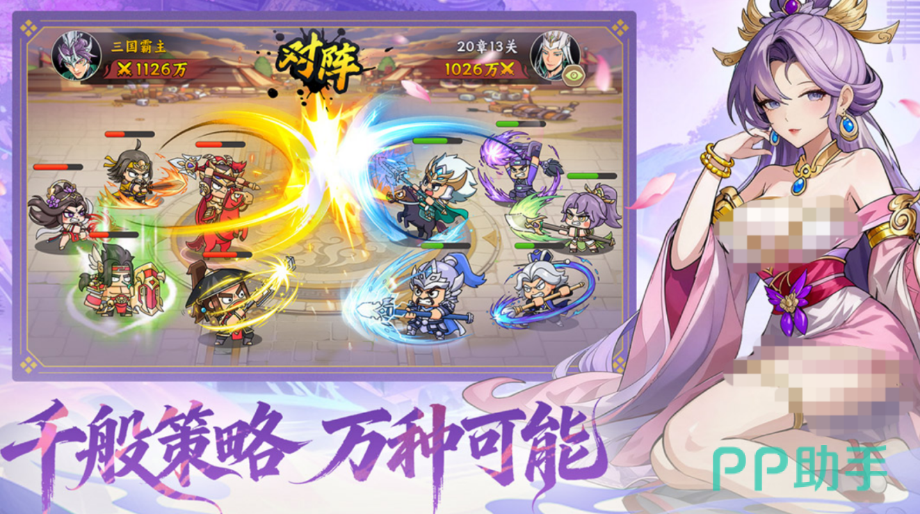 以三国为背景的策略游戏,收录大量知名武将,每个棋子都有独立技能和晋升体系。玩家可以通过布阵,激活武将间的羁绊效果,比如五虎上将的铁骑洪流,魏国雄狮的铜墙铁壁。游戏还加了神兵和美人养成系统,还可以兼顾策略对战,角色养成的乐趣,新手也能快速集齐武将开启对战。