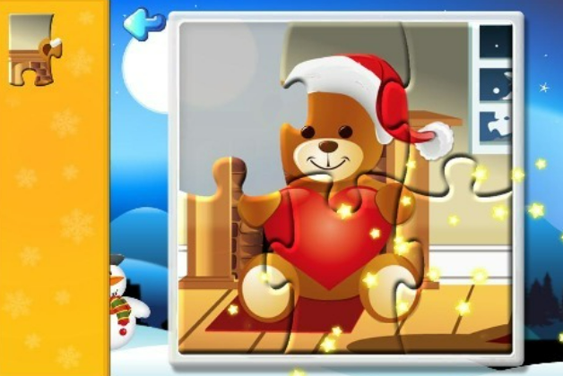 以圣诞主题为载体,融合拼图操作与汉字启蒙。拼图规格由2×2逐步升级至4×4,难度梯度清晰。完成拼图后自动播放标准普通话发音、汉字拆解动画及词义简释。特别设置亲子协作模式:家长与儿童分工完成同一幅拼图,在互动中自然引入汉字读音、笔画与应用场景,强化家庭共学效果。
