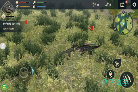 游戏的核心是玩家扮演一只恐龙,在旷阔的侏罗纪世界探索和成长。这里危机四伏,到处都可以能隐藏着意想不到的危险,玩家就是在这样的环境中寻找食物来维持生命。游戏操作不复杂,使用基础摇杆控制移动,以及一个攻击按钮。自身属性包括生命、能量,饥渴值和饥饿值。玩家需要时刻关注这些数值,避免死亡。在地图探索中,有各种小任务可以完成,完成后获得金币奖励,可以用以解锁皮肤。