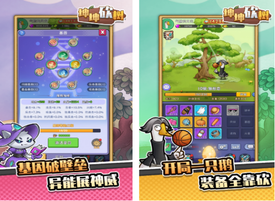 作为以开箱子玩法为主的手游,也融入了砍树这种独特的设定。开局以后只是一只鹅,但是却能通过不断砍树的方式获得各种厉害的装备,增加自己的战斗力,这样在冒险闯关的时候既能带来很多的欢乐,也能够有成就感。在画面风格上以特别可爱又清晰的为主,也可在砍树的时候同伴帮助,来展现出自己战斗力。