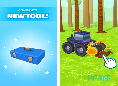 同样也是以伐木为主题,为了能够将森林当中的树木砍伐,成为真正的砍伐森林高手,可以使用各种各样的工具,包括比较简单的句子或者是快速完成砍树的大型机器。利用砍伐成功所得到的木头,更能够完成建造房屋的任务,也需要在摧毁树木的过程当中,发挥自己的聪明才智。在工具方面也要不断的解锁,才能够拥有更高等级的,在砍树的时候更为容易。