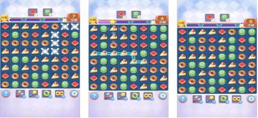 这款消消乐闯关类的益智游戏上手很快,利用上下左右划屏的方式就可以轻松消除各种目标,消除节奏极快同时带来的解压感也很不错,过瘾解压的游戏理念比较适合休闲时刻玩耍,消除目标都是以一些五颜六色的小甜品,关卡设定毫无难度只需三合一就可消除,这款纯单机的消消乐益智APP你也试试吧。