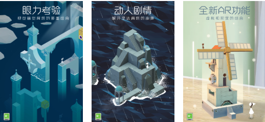 纪念碑谷这款休闲益智手游在移动端可谓好评如潮,存在着感人剧情和特殊视觉错位解谜机制,全新增加了一个AR功能可以自定义与环境互动,考验眼力和逆向思维的闯关节奏也蛮有意思,如同几何艺术品一般的建模塑造也相当硬核,视觉听觉方面的反馈都很棒也是这款佳作获奖无数的原因。