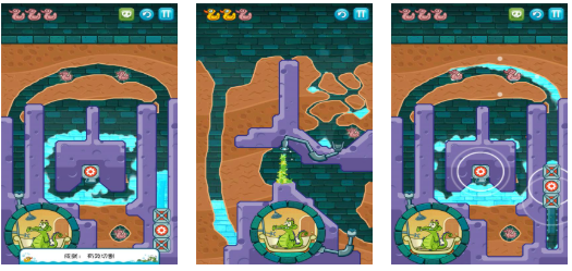 这款益智闯关手游小清新的画风看上去就像迪士尼动画,主角小鳄鱼居住在肮脏的下水道深处,而你则要输送干净的水源让小鳄鱼清理身体,独创的休闲益智闯关模式更有新鲜感,可以点触屏幕拨开泥土尝试送水,真实的水花声音与滑稽的画面带来视听享受,为小鳄鱼洗澡的主要任务也颇有代入感。
