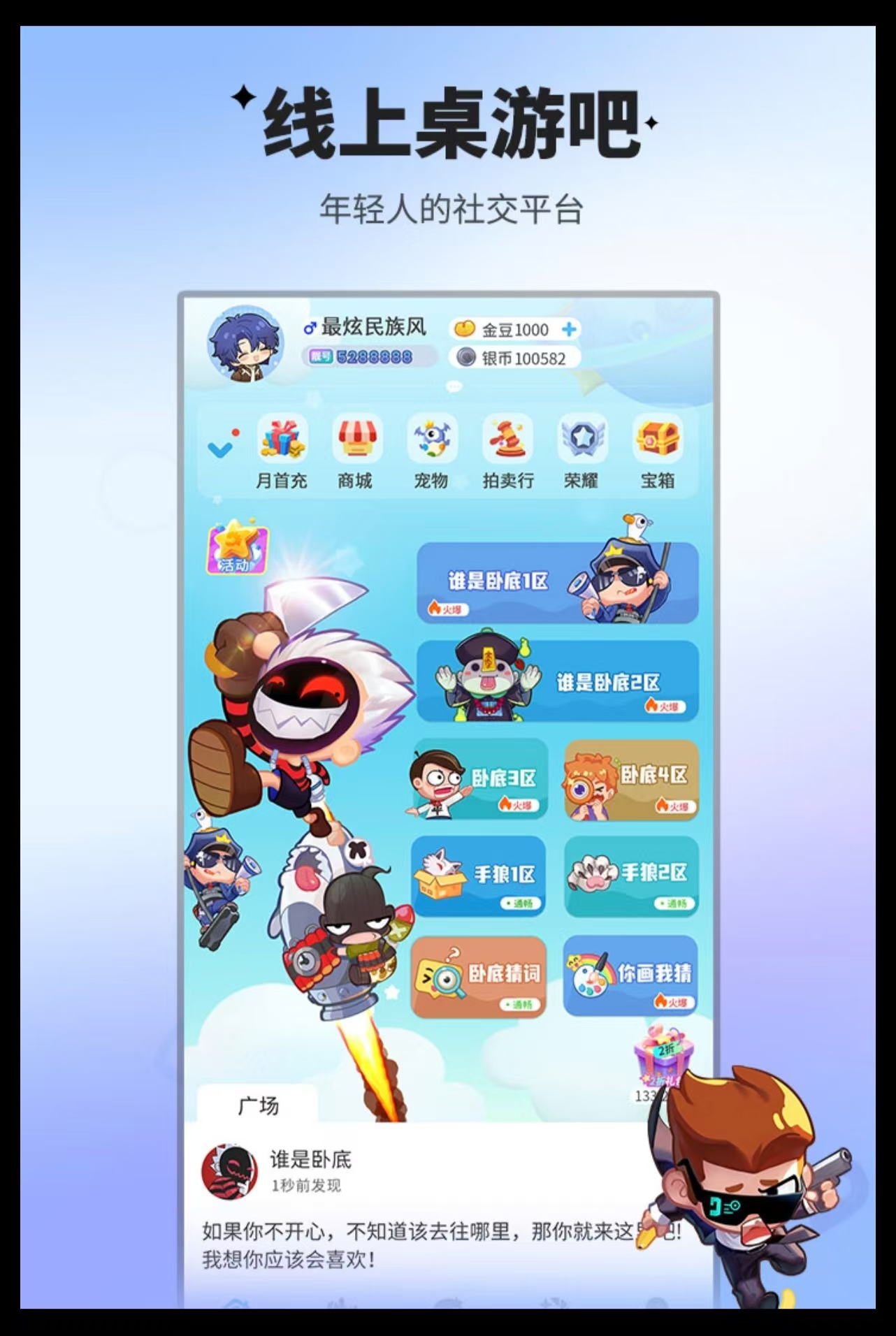 《谁是卧底》体验到很多玩家共同进行推理,游戏内玩家们会分配不同的词语,每个人轮流发言的方式来进行描述,所有的玩家中会有一个是卧底选手,需要大家通过分析找出这个卧底。也需要不断的伪装自己的身份,所有的玩家都发言完成,会采用投票的方式来淘汰选手。需要不断的和其他成员们进行互动,也可以邀请身边的人加入组队中,当被怀疑时可以不断为自己进行辩解。