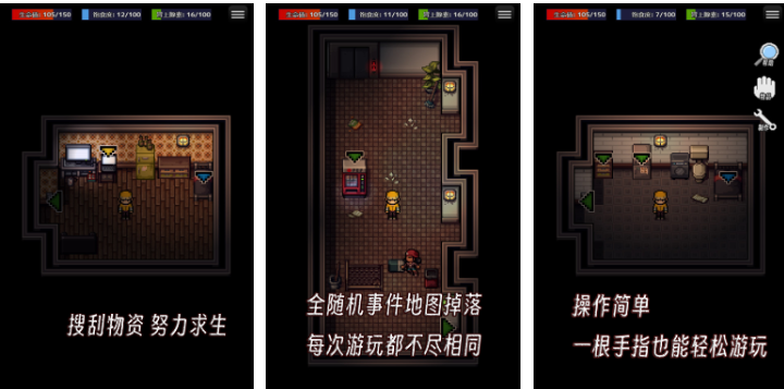 生存之志这款像素背景的求生游戏生存理念特殊,搜刮物资的基础求生玩法会辅助大家探索地图,随机事件更多而且掉落率也更高,每次进入不同楼层进行探险都会遭遇不同情况,竖屏独立的操作机制就算一根手指都能掌握,极为紧张硬核的生存气氛呈现也是这款佳作的主要魅力哟。